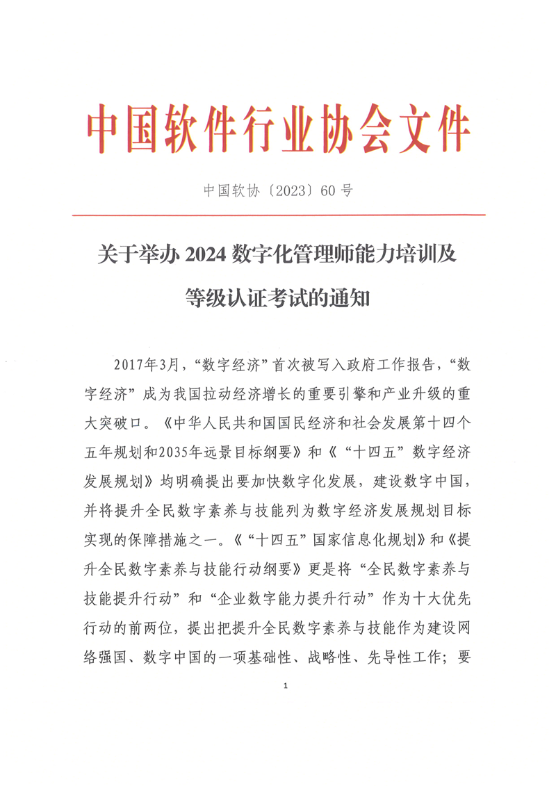 关于举办2024数字化管理师能力培训及等级认证考试的通知